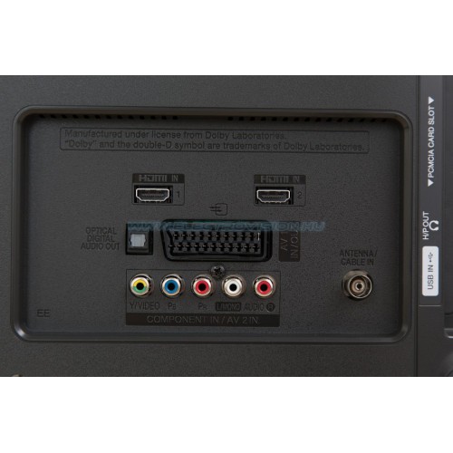 Csatlakozások HDMI 1.4 : 2db / USB 2.0 : 1db / Antenna / CI Modul / Optikai kimenet / Fejhallgató / RS 232C / Komponens és Kompozit / Scart